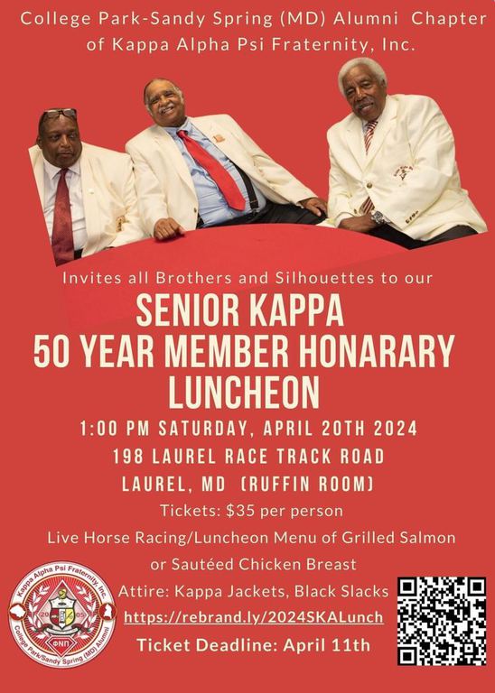 The time has come to pay homage to their lives and those sacrifices they have made. Senior Kappa’s are those who have graced our Fraternity with their wisdom and energy since the year 1911. They now pass the torch to those of us who come behind them. We must continue to extend and connect in our efforts to both the young and the more mature in order to continually grow this Fraternity. Senior Kappa Affairs will work at engaging all members in establishing this type of chapter connection.